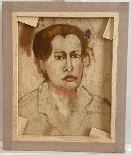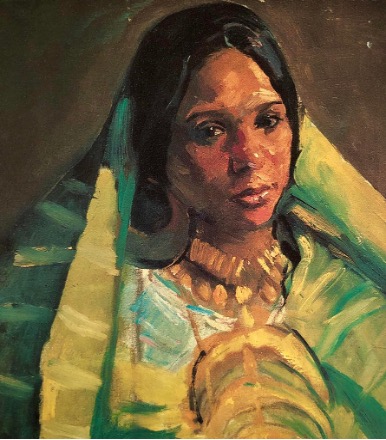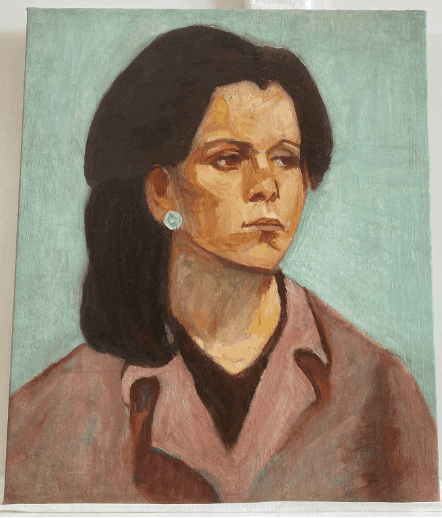 Although Elfergani produced a significant body of work throughout her life, much of it was tragically lost, leaving behind only scattered remnants. The majority of Elfergani’s paintings are thought to have been produced during her studies in Cairo, though some date from much later periods. According to her niece, the artist created many paintings, some gifted to friends and family, but most were either damaged or lost in a fire during the 2011 revolution in Benghazi.17 Wareda, whose father has two of the artist’s works in his personal collection, recalls that she knows of only eight surviving paintings. These include primarily portraits of family members, along with one landscape and a self-portrait.18